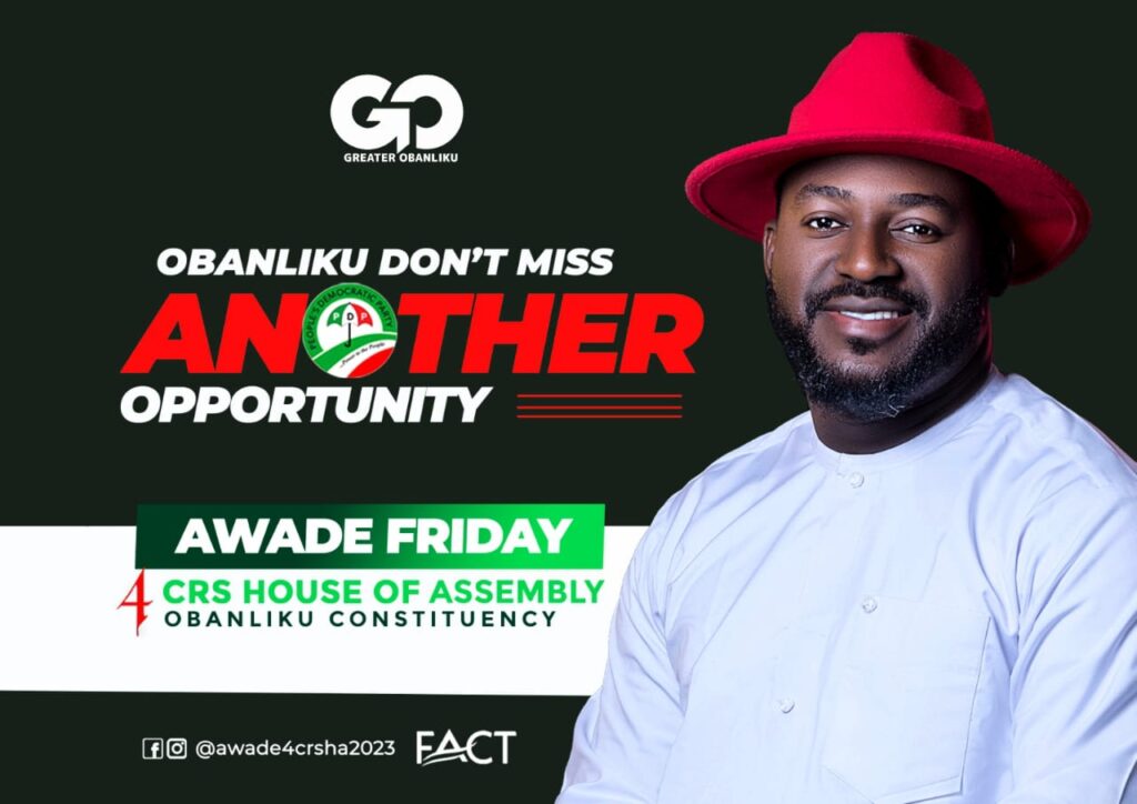 People of Obanliku are we going to make the same mistakes we made in 2019? The answer to that question is one of the many reasons I, Awade Friday kamie is Standing tall to seek the mandate to represent the good people of Obanliku in the Cross River State House of Assembly come 2023 under the Platform of the Peoples Democratic Party (PDP) and I do this With utmost sense of humility and sincerity to serve my people.
