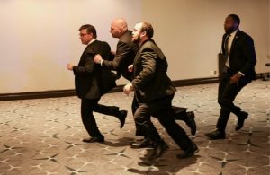 Gunfire near a security checkpoint caused panic among the roughly 2,600 attendees, with many taking cover as security personnel rushed key figures to safety.