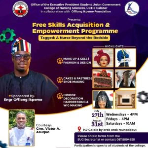 Between July and September 2024, the Victor Antigha Asuquo led administration partnered with the Offiong Ikpeme Foundation to organise a skills acquisition programme for students. Through the programme, students received certification in entrepreneurial skills such as baking, makeup, tailoring, and related areas.