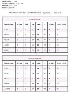 Her exceptional academic achievement has attracted praise from fellow students, lecturers, and members of the Urhobo community, who describe her as a shining example of discipline, consistency, and excellence in legal studies.