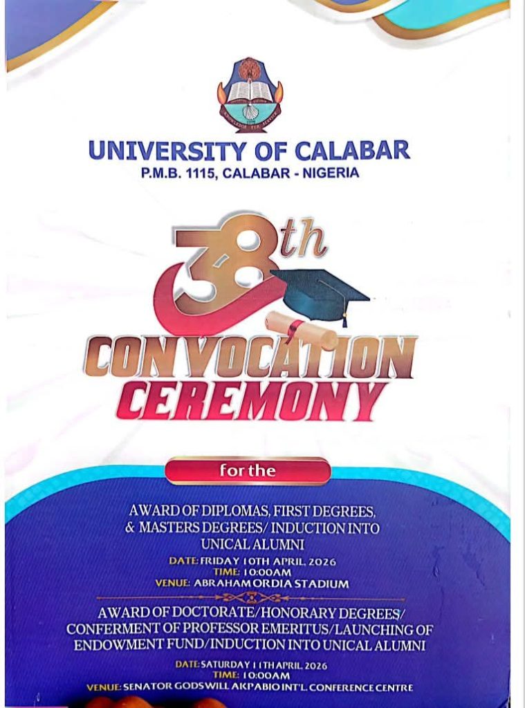 Read also University of Calabar Holds 38th Convocation, Charges Graduates on Lifelong Learning