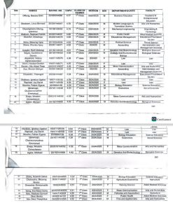 According to the list, Offiong, Bassey Edet from Business Education emerged with the highest CGPA of 4.77, followed closely by Obotidem, Linus Bernard of Modern Languages and Translation Studies and Okpodighieno-Obong, Iyakakwa of Mechanical Engineering, both with a CGPA of 4.75.